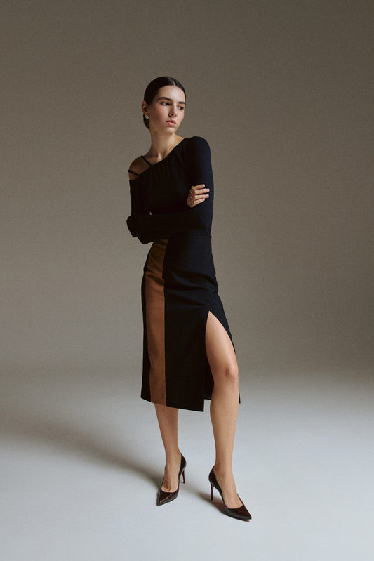 Black Umber Midi Skirt