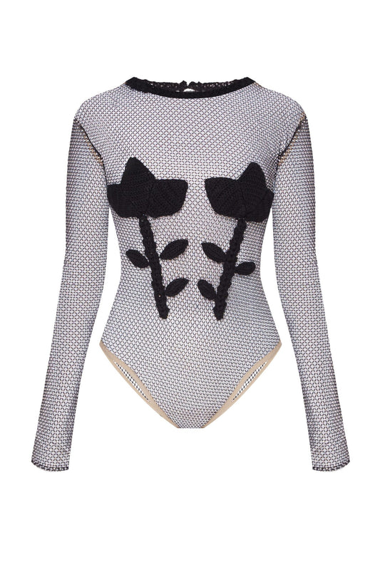 Black mesh bodysuit in stones
