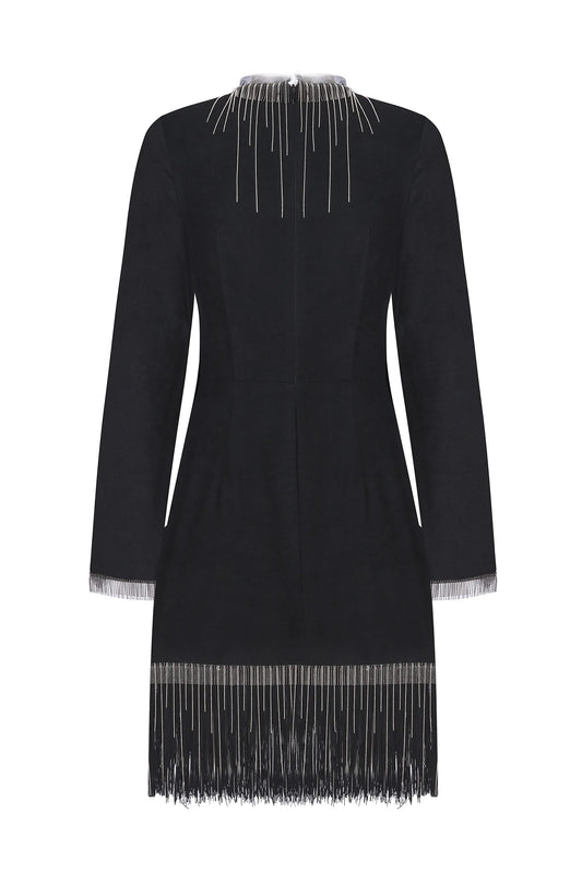 Black mini dress with a horizontal pattern