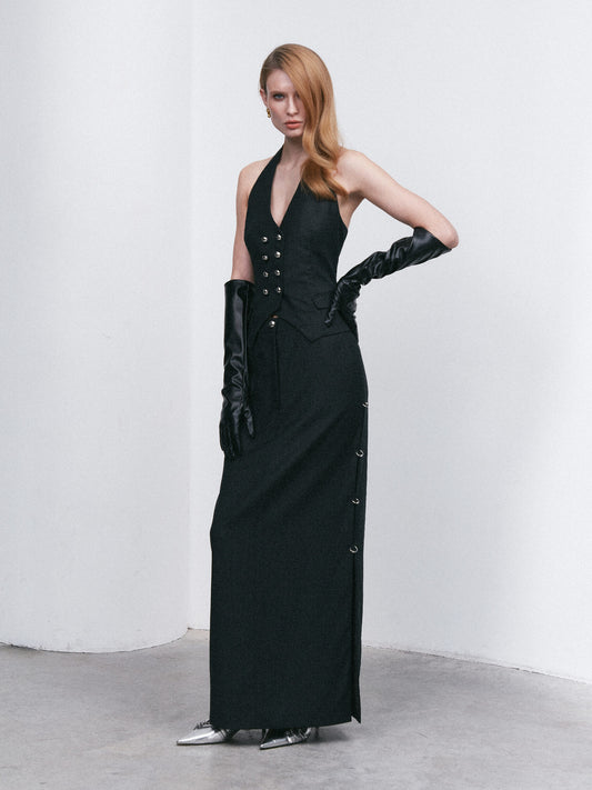 Double-breasted waistcoat with open back in graphite