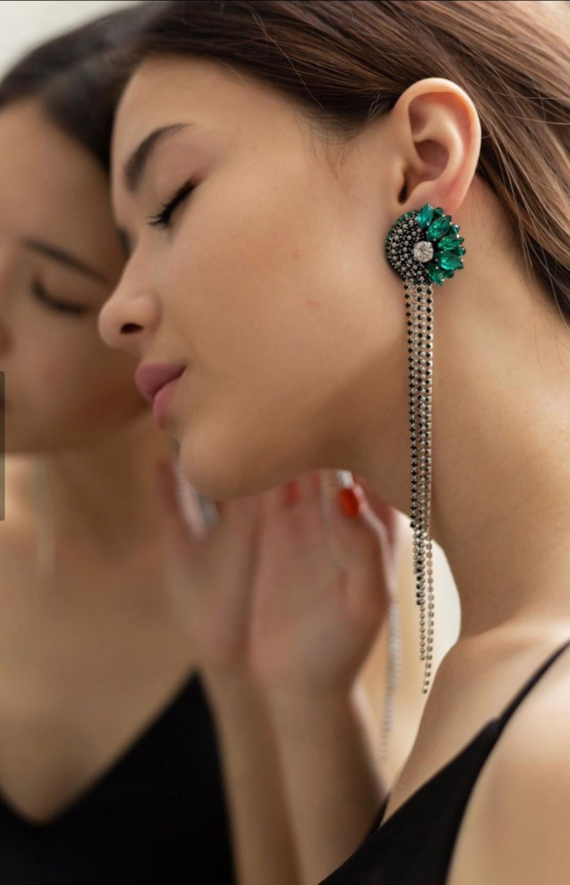 "Earrings are an invariable attribute of a woman's arsenal π With the help of earrings, you can emphasize the color of your eyes, make your face more expressive, and place accents in your image π Materials: π Czech beads π crystal beads π clove fastener The length of the earrings is 18 cm."