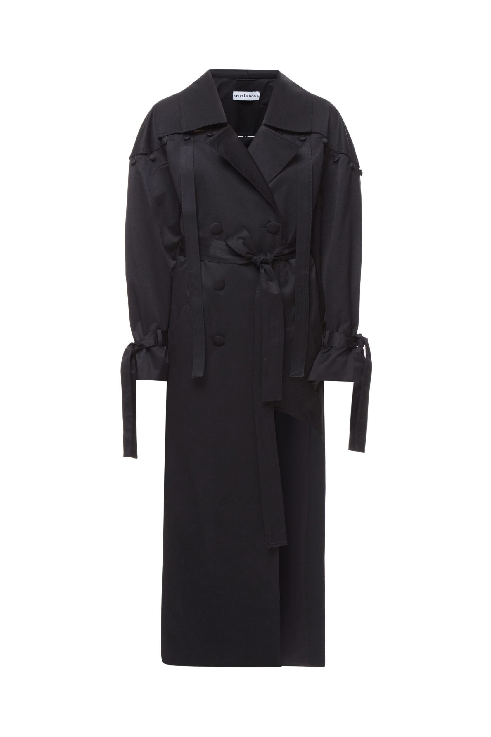 Front-slit trench coat with detachable top