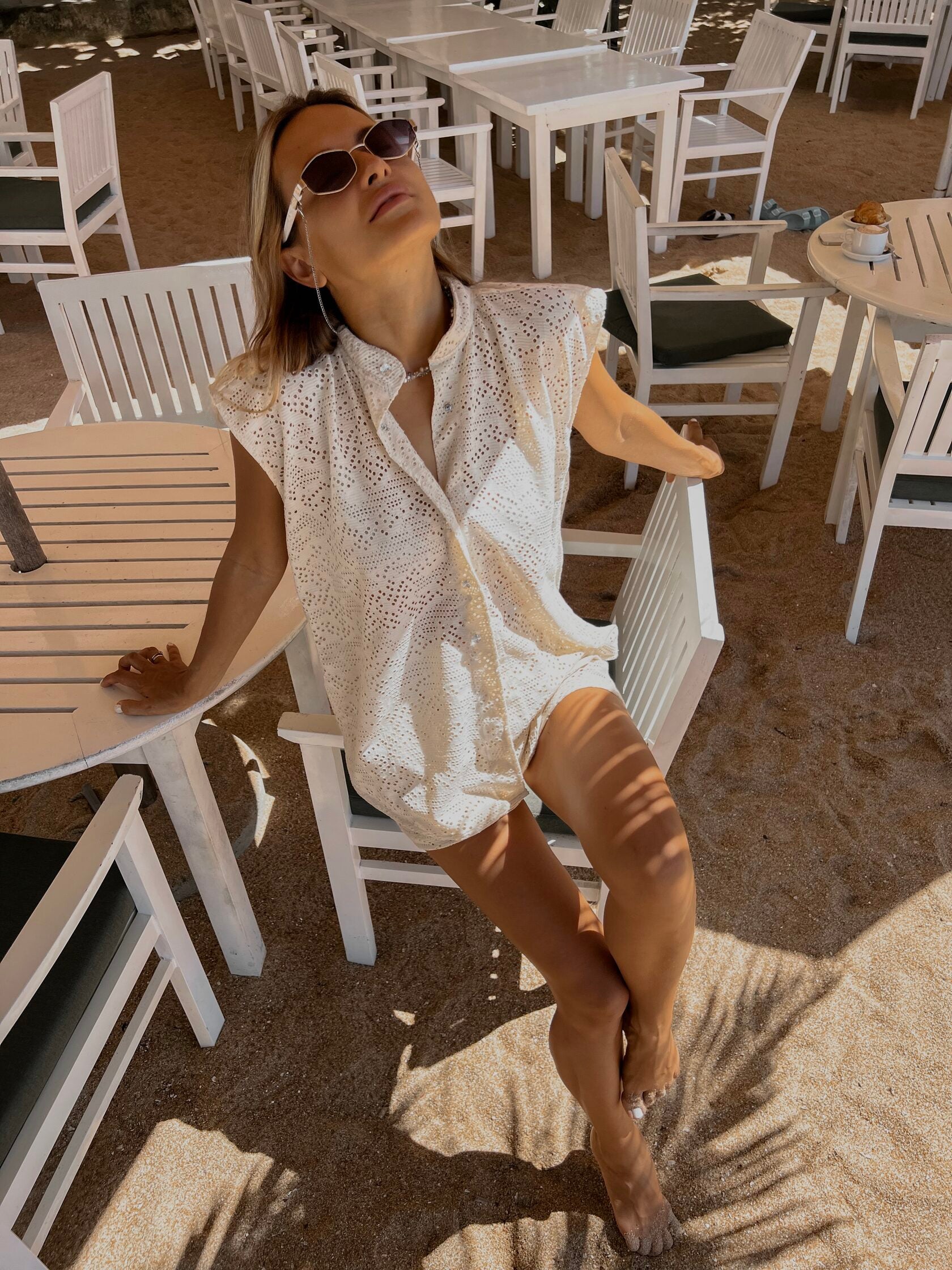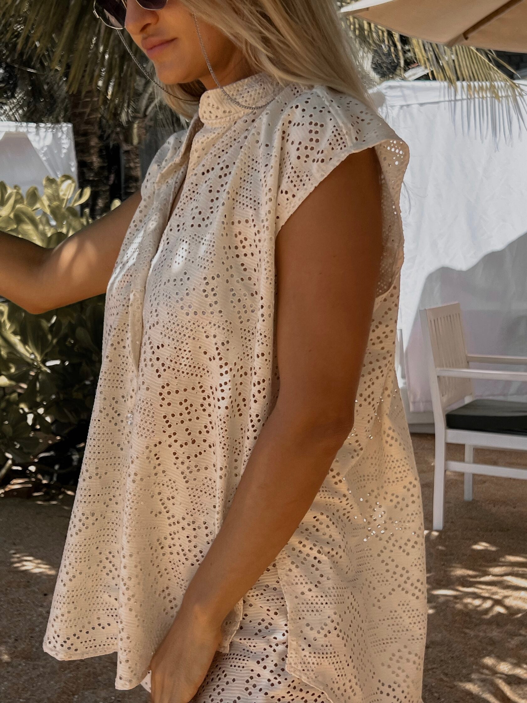 The set in cream color is made from 95% cotton and 5% stretch fabric.
