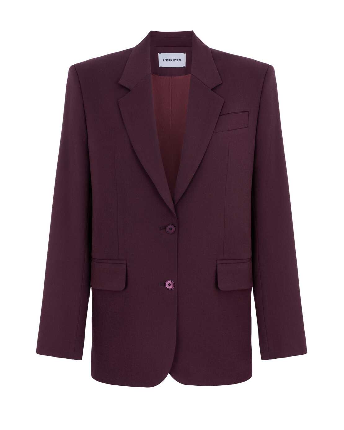 Elongated straight-cut jacket, oversized. Two-button fastening, two pockets with flaps on the front. Wide loose sleeves with shoulder pads. High shoulder line, slot at the back, rounded sides. The set includes a belt.