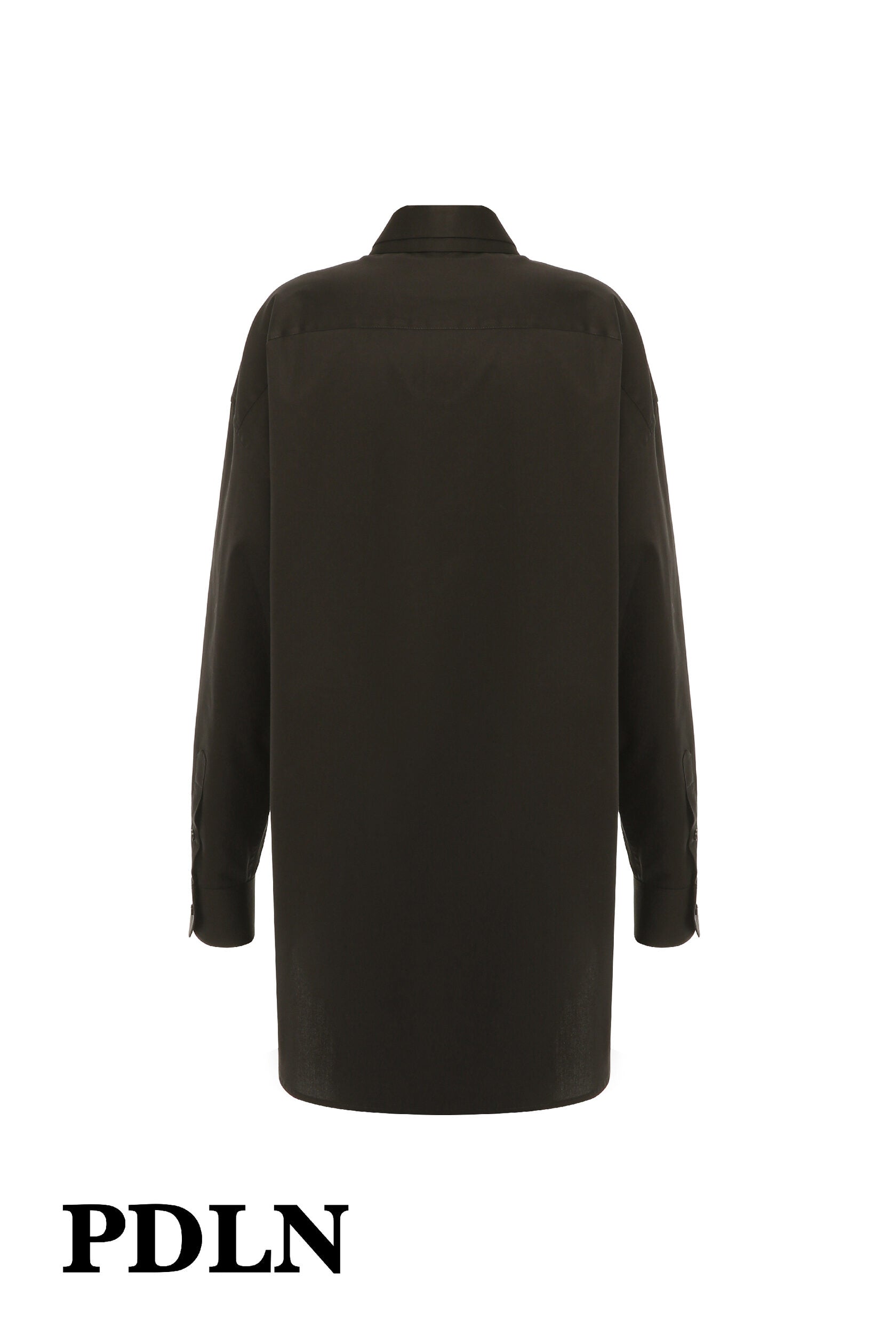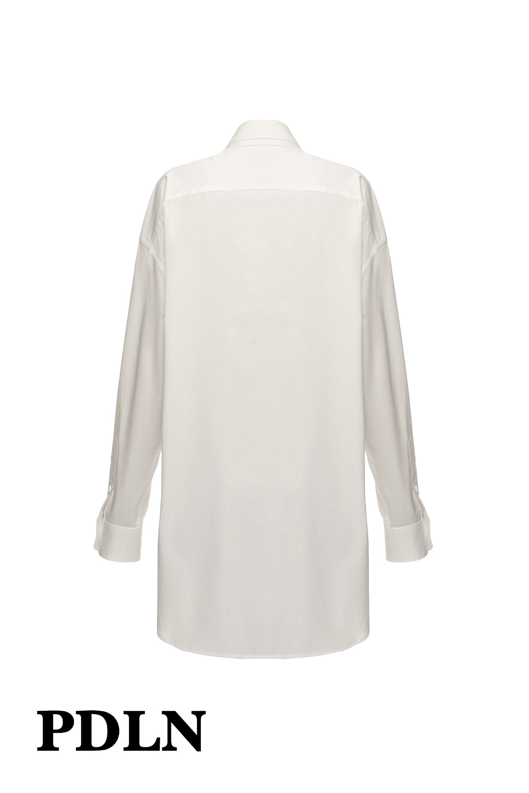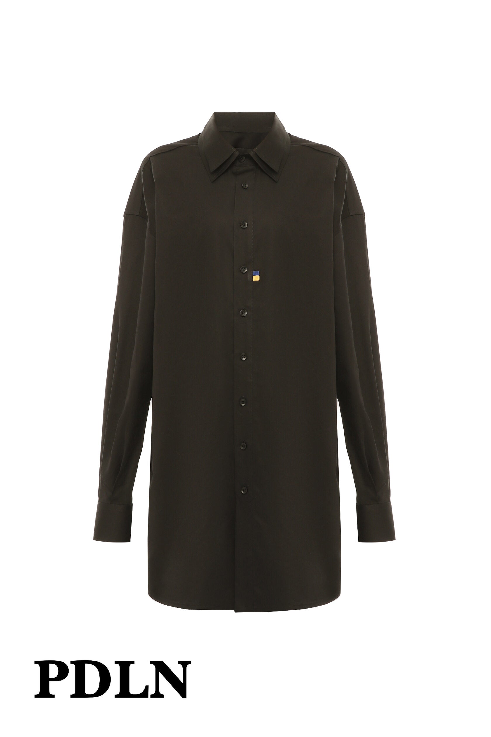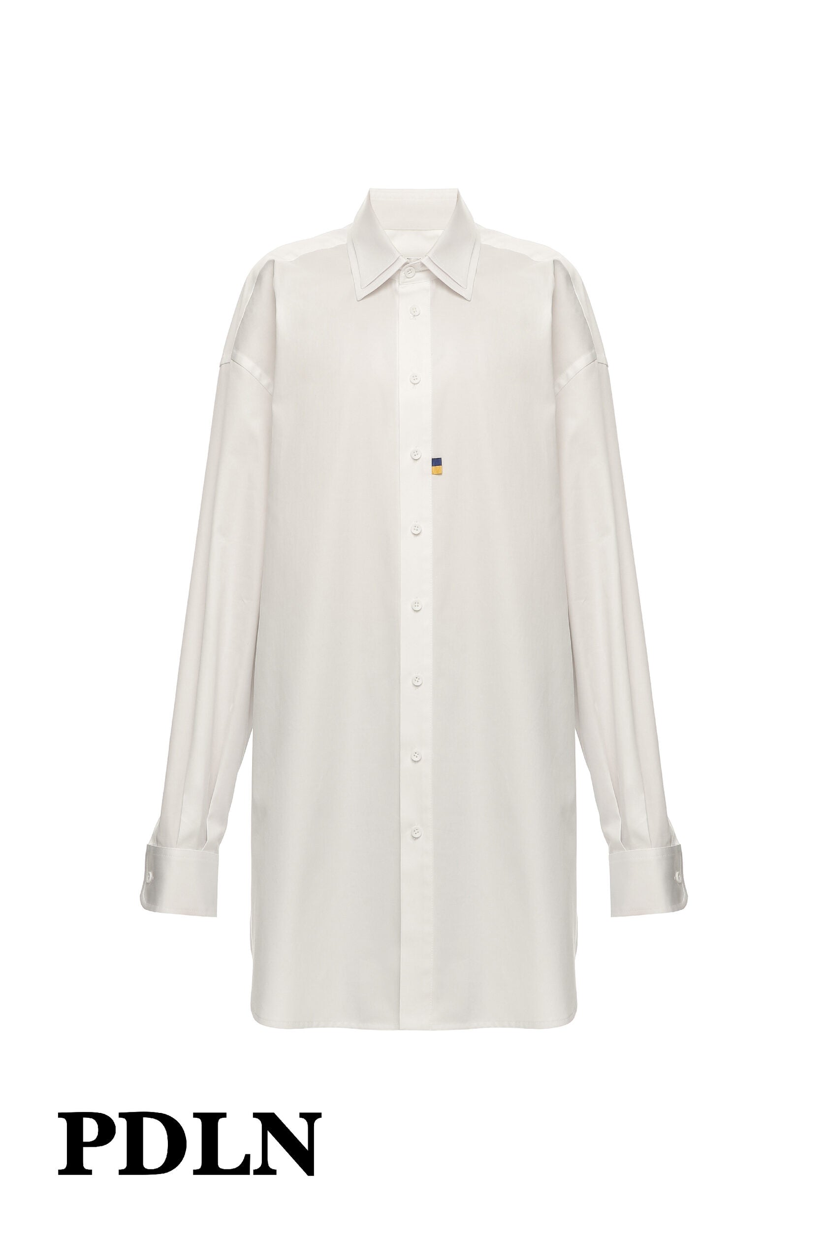 Unisex oversized shirt with a button-up closure in the center. Double stand up collar with a button. Made in Ukraine.