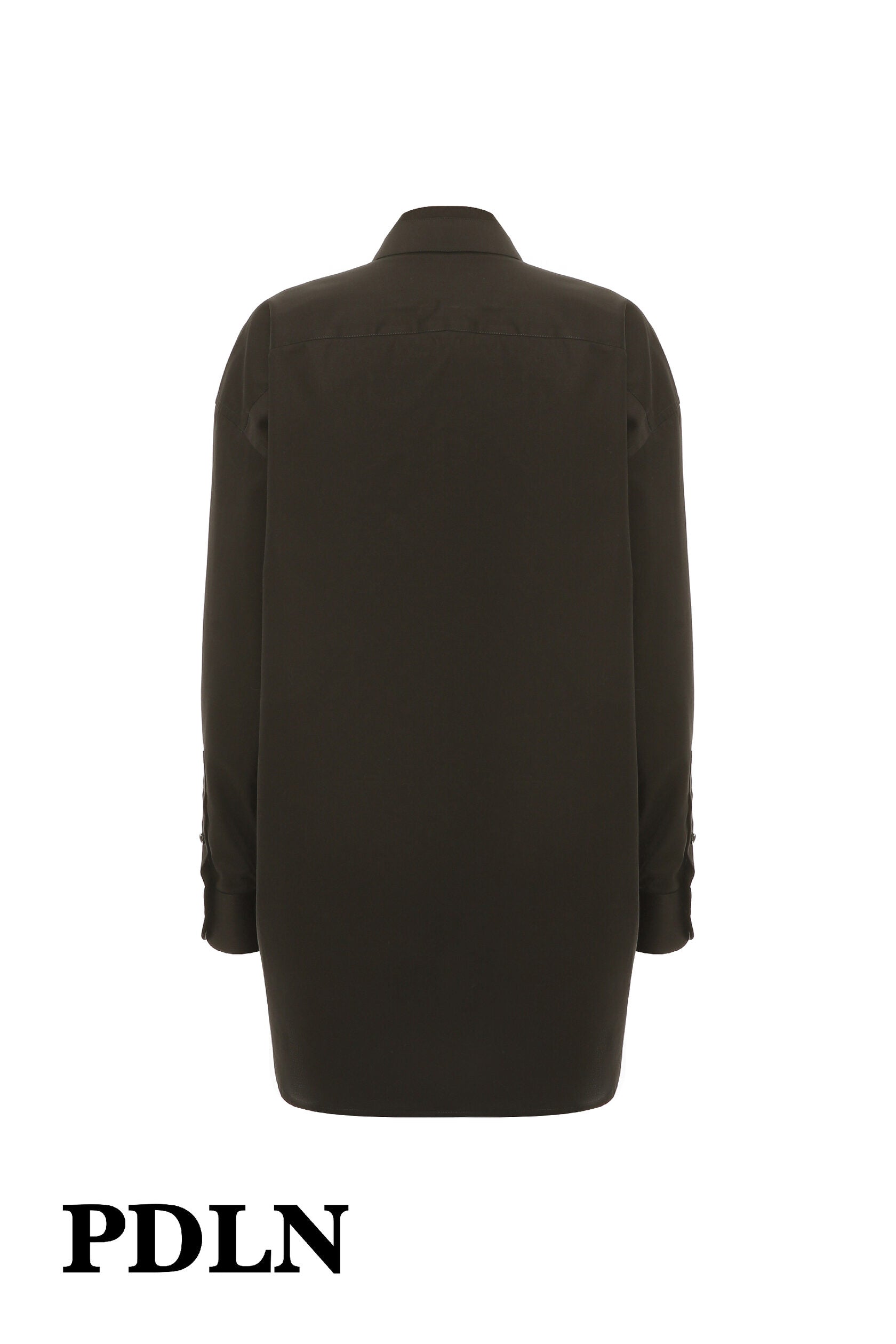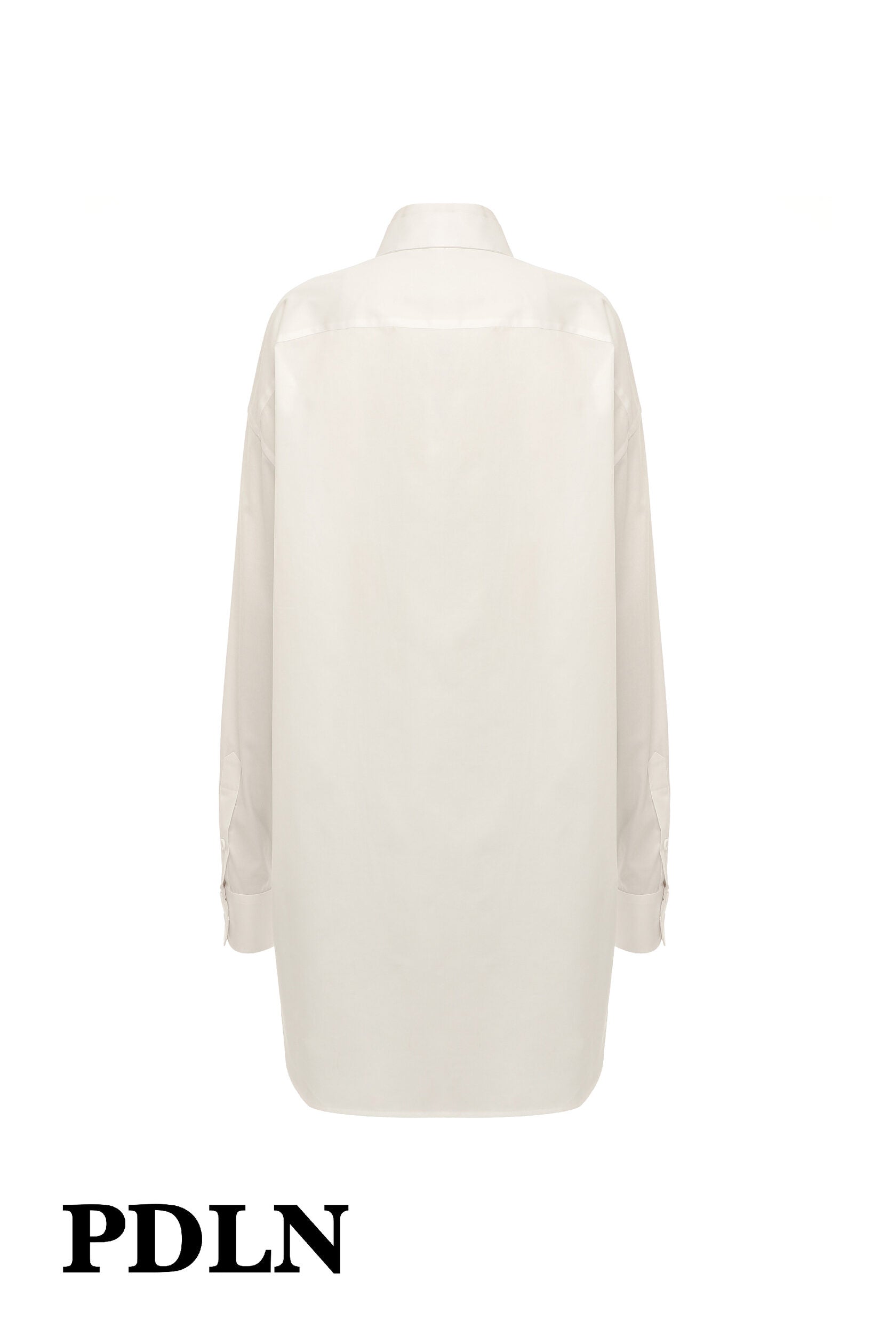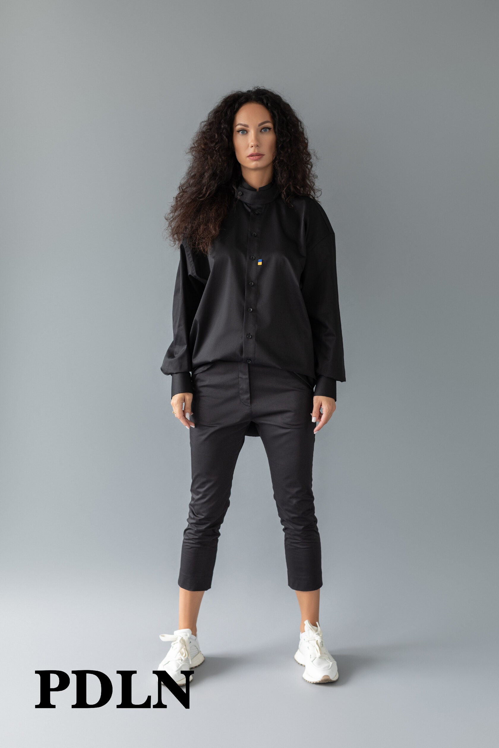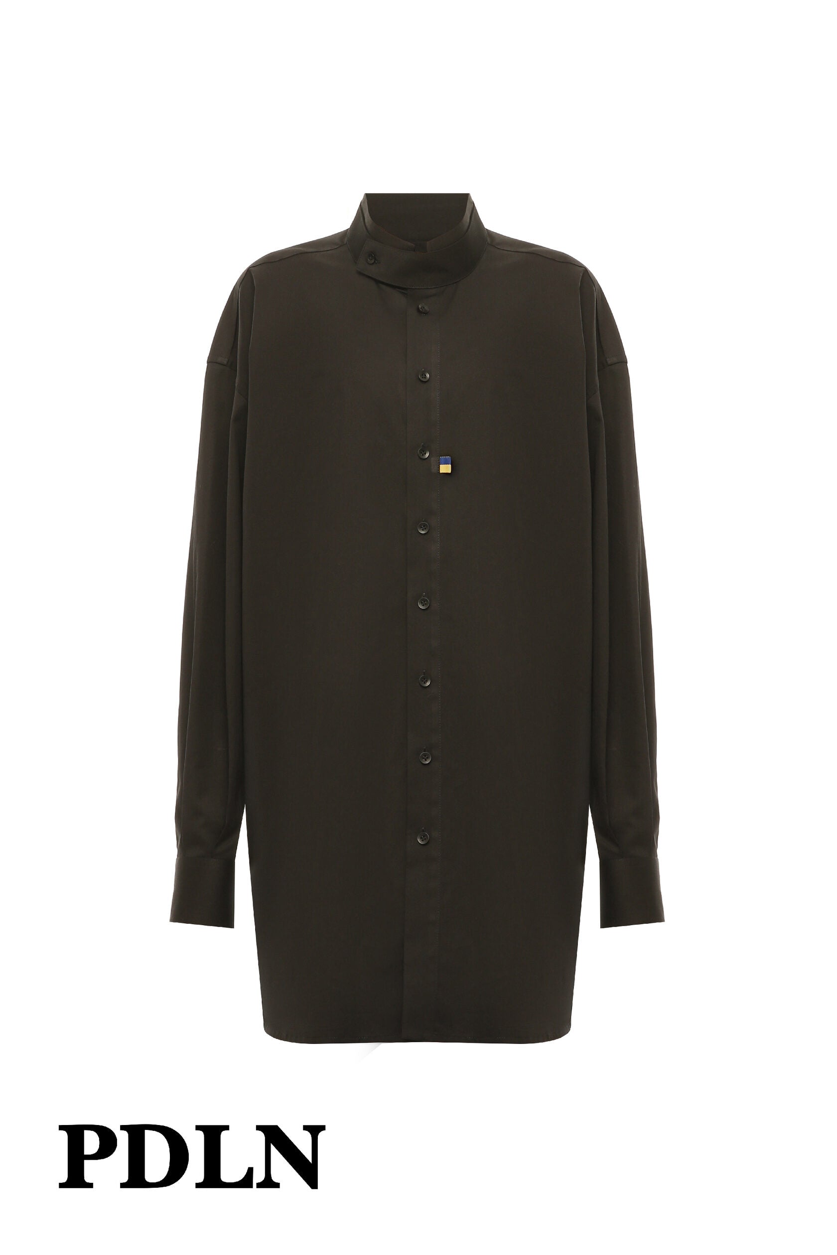 Unisex oversized shirt with a button-up closure down the center. Double stand-up collar with a button on the right. Made in Ukraine.